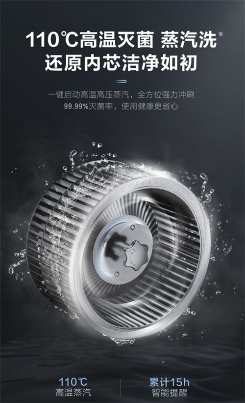 对于用户来说,即便拥有十八武艺好体魄,不如让机器替你代劳。美的新静吸油烟机X5S拥有110°C高温灭菌蒸汽洗功能,只需将水管连水杯和烟机,轻松一键启动,即可快速清洗烟机内部顽固油污,且洗净率达到99.1%以及除菌率达到99.99%,让烟机保持洁净如新,省去用户手动拆洗的麻烦,让你省力更省心!