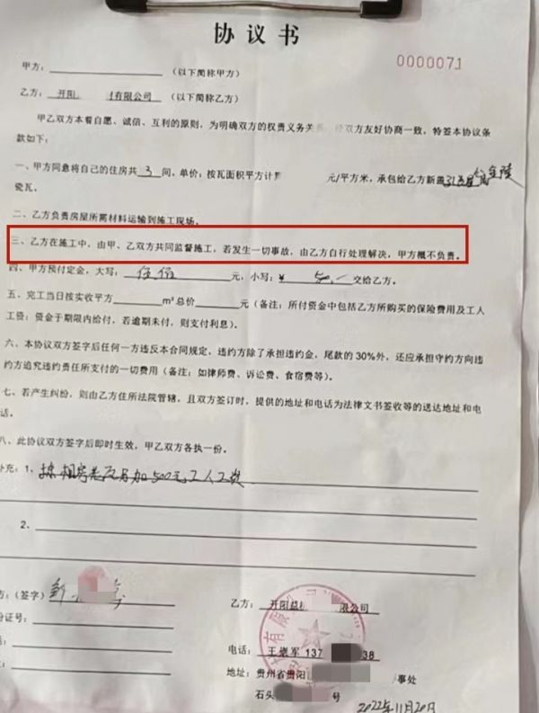 王崇军表示,卖瓦盖瓦不只是买一个产品,更是一个服务过程!好的产品固然重要 ,但同样离不开好的施工和服务!施工好做出来的整体效果才好,目前他的施工团队全是经验丰富的老师傅,不仅手艺好,而且对施工要求非常严格,施工用瓦、用料、都会清晰的体现在合同中!就连工程安全方面他也为客户考虑的非常周到,在合同中特别标注了一条:施工过程中出现的意外均有工程方负责!光凭这一点,就让很多用户放心的选择他!