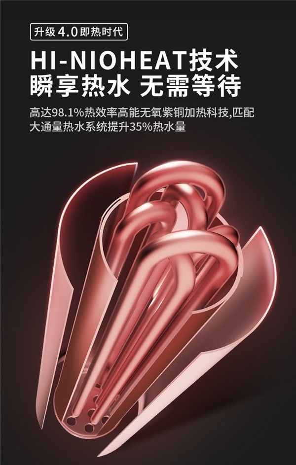 核心发热体部件采用诺克司第7代Hi-Nioheat海立特技术,高达98.1%热效率高能无氧紫铜加热科技,匹配大通量热水系统提升35%热水量,从根本上实现即开即热的大水量瀑布式沐浴。