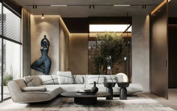比如茶几上需要射灯或格栅灯重点照明;看投影的时候,需要周围有微光,减弱强烈的明暗对比带给眼睛的不适感; 又能用射灯重点呈现钟爱的摆件。