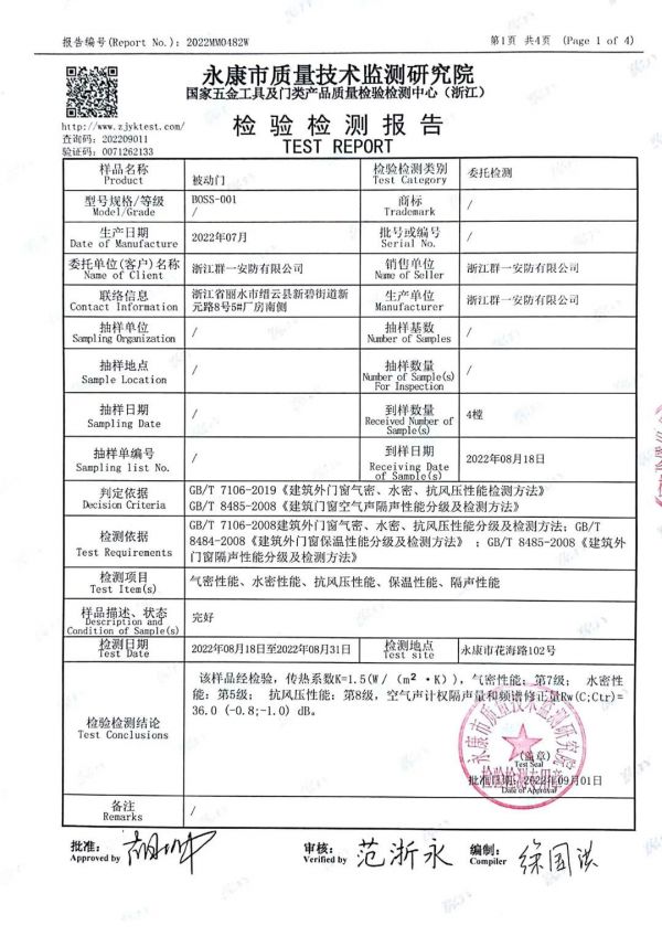 经过国家相关部门的认证,《曜森》隔声性能≥4级,气密性能≥7级,水密性能≥5级,抗风性能≥8级,保温性能符合国家相应标准,能够对房屋建筑起到极佳的降低能耗作用,可作为被动式建筑组成材料。