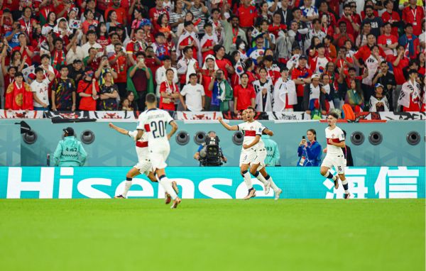 这场比赛对韩国队来讲,可谓经历了从地狱到天堂的过程。尽管提前锁定出线席位,力保小组第一的葡萄牙队还是派出了包括C罗在内的多位主力。开场仅5分钟,21号奥尔塔接队友倒三角回传中路推射破门,帮助葡萄牙取得梦幻开局。但韩国队一直稳扎稳打奋发向前,第27分钟,金英权门前扫射破门,帮助韩国将比分扳平。最终上半场比赛结束,韩国1-1葡萄牙。易边再战。第51分钟,韩国10号李在成外围远射偏出。第64分钟,葡萄牙连换三人,C罗被替换下场。第65分钟,韩国队再度打出犀利进攻。第91分钟,孙兴慜长途奔袭后直塞黄喜灿,后者冷静推射远角破门。全场比赛结束,韩国以2:1葡萄牙迎来本场胜利。这一切都足以成为世界杯的经典场面,诸神之战,格外精彩,令人动容。