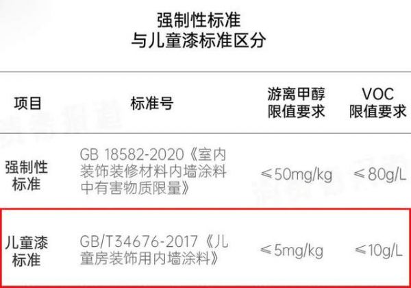 (2):选执行国家儿童漆标准GB/T 34676-2017《儿童房装饰用内墙涂料》生产的水漆,因为儿童漆标准比普通漆标准更严格,有害物质限量值明显严于普通漆,新增耐脏污能力要求。