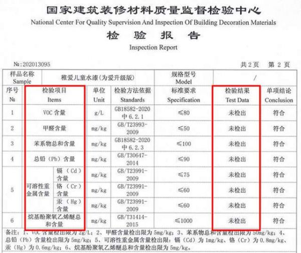 比如晨阳水漆的这款稚爱儿童水漆,执行的是儿童漆标准,并且通过国内十环、法国A+级认证,而且在检测报告中各项有害物质的检验结果均为:未检出,完全优于儿童漆标准。