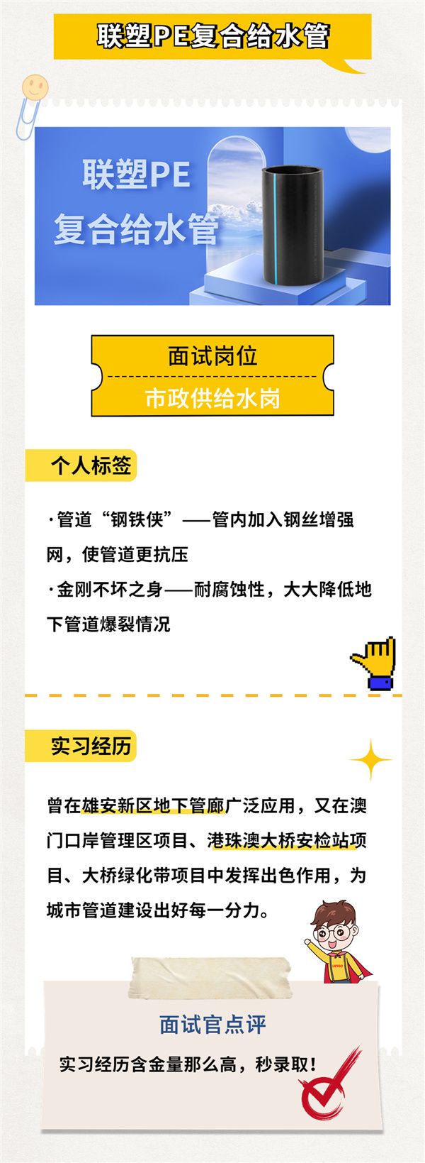 曾参加多项民生工程建设,以极高标准的产品质量,成为无数公司求而不得的管道人才。