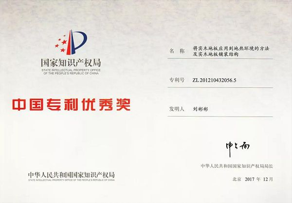 (天格地暖实木地板获得中国专利优秀奖)