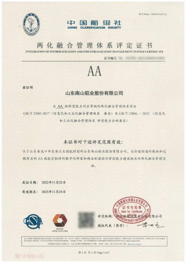近日,山东南山铝业股份有限公司完成两化融合管理体系由“A”升级至“AA”级认证,促进了南山铝业从传统企业转型升级,加快了战略目标落地,在彰显南山铝业综合实力的同时,也推动了企业品牌影响力的传播。
