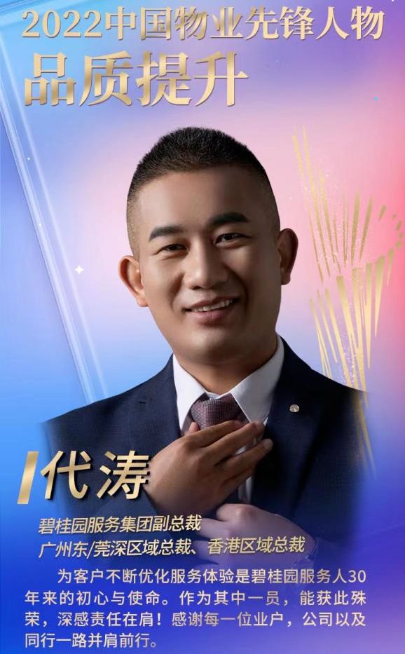 (碧桂园服务集团副总裁、广州东/莞深/香港区域总裁代涛获评“2022中国物业先锋人物”)