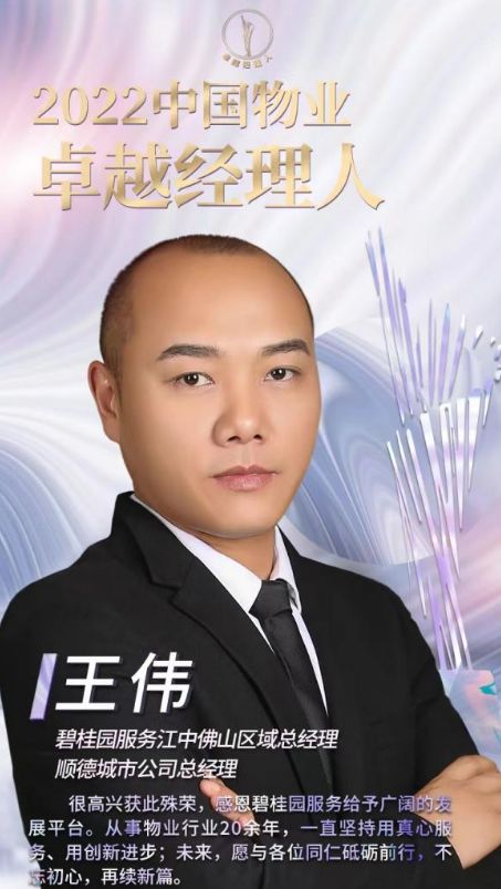 (碧桂园服务江中/佛山区域总经理、顺德城市公司总经理王伟获评“2022中国物业卓越经理人”)
