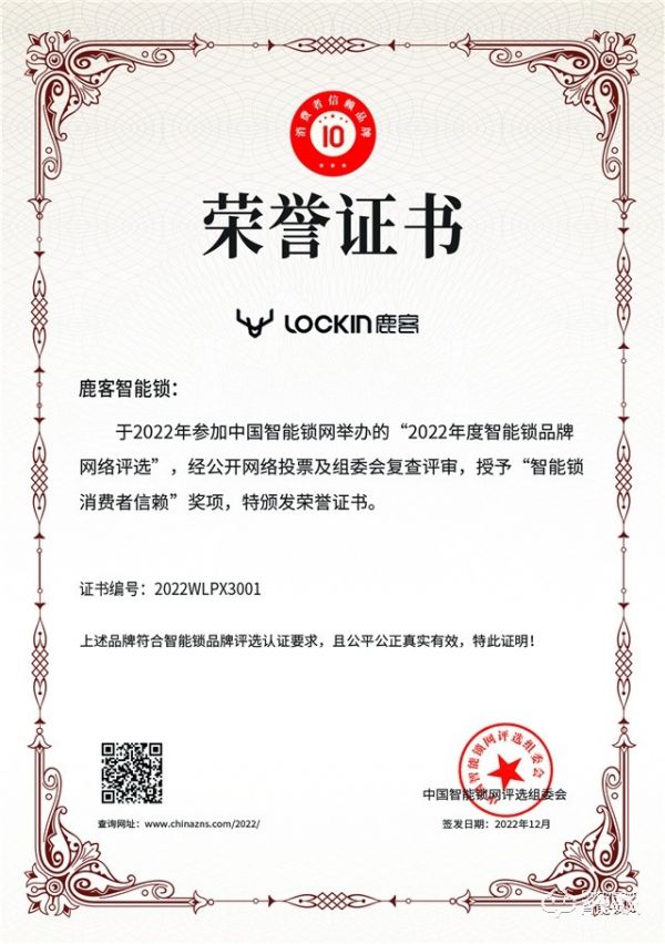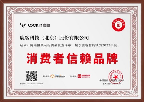 再捧大奖!鹿客智能锁斩获2022智能锁消费者信赖品牌