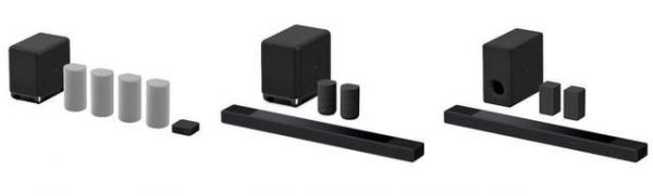 搭载360音频黑科技的国行套装阵容,从左至右:HT-A9+SW5震撼环绕套装,HT-A7000+SW5+RS5震撼环绕套装,HT-A7000+SW3+RS3S低音环绕套装