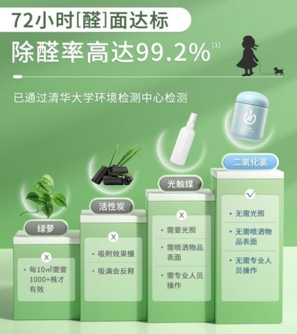 首先,大家一定要重视房屋除甲醛这一环节,要充分了解甲醛的危害。作为一种对人体危害极大的有害气体,房屋内的甲醛如果超标,人们就会出现眼红、眼痒、咽喉不适、咽喉疼痛、声音嘶哑、打喷嚏、胸闷、气短、皮炎等不适症状,若长期处于甲醛超标的环境中,则容易出现免疫下降,多病等情况,甚至面临患重病的风险。所以,大家一定要了解新屋怎样除甲醛的正确方法,才能保障自己的身体健康。而一般情况下,人们提到新屋怎样除甲醛,往往总是率先想到一些传统的老式方法,如开窗通风、屋内放置绿植、屋内放置活性炭包等。但对于急于入住的群体来说,这些方法虽然有效,但历时太长,使屋主迟迟无法入住。相比之下,随着科技的进步,市面上已然出现了更有效的去除甲醛产品,西兰长效甲醛净,就是二氧化氯除甲醛的代表产品之一。使用这些产品,能够帮助屋主早日入住,除甲醛事半功倍且效果有保证。