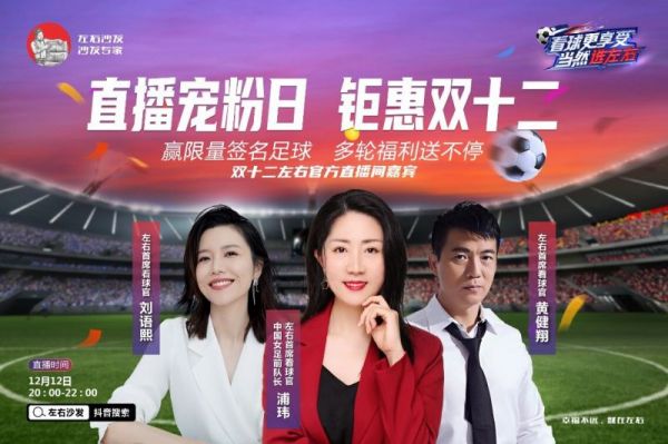 在家看球,当然享受最重要!12月12日晚8点,左右首席看球官、前女足国家队队长浦玮将走进左右沙发官方直播间,连线左右首席看球官黄健翔、刘语熙一起侃球,N多惊喜福利发放,还有家居好物好价震撼放送,精彩即将上演!