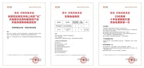 尤其针对地板这样的大宗消费耐用品,服务保障一直是全行业的痛点与短板。对于消费者来说,他们期望获得的是完整的地面解决方案,即集好产品、好服务、高保障于一体的方案交付。天格深知安装对于地板的重要性,所以在2011年便提出了《地暖实木地板系统解决方案》。在这十余年间,天格更是不断完善“方案交付”的每一个细节,将服务长度向两端持续延伸。2019年,天格创造性地提出安装服务模式,全网点的布局、高专业的安装,极大提升了服务的质量。2022年,天格以安装服务站为基础,首次提出“总部负责安装”模式,专业的安装人员、专业的辅料工具、严苛的安装标准与流程,不仅大幅提升了用户在安装环节的体验质量,更杜绝了出现售后时三方扯皮的行业难题,用户权益得到了大幅提升。