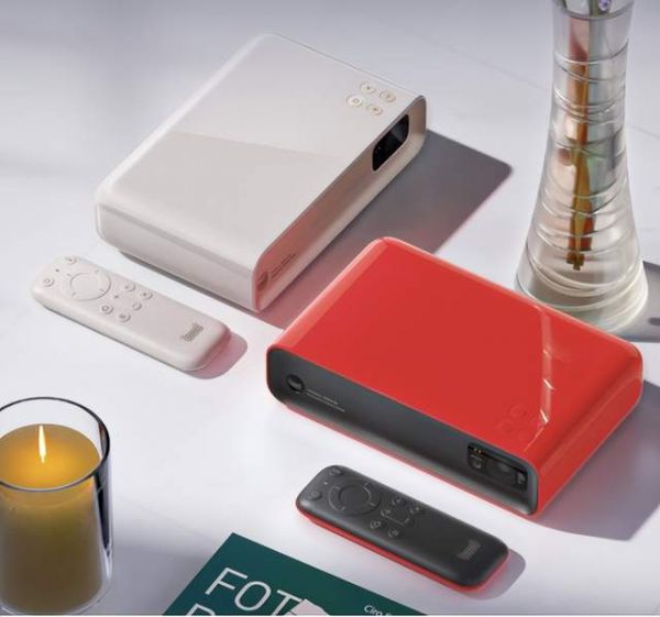 先说天猫精灵小红盒Pro投影仪,它采用了相当紧凑精致的外观设计,外形尺寸仅为一本图书的大小,整机重量仅有1.03kg,有着更好的便携性与灵活性。边角轮廓圆润,表面采用了高亮的钢琴烤漆工艺,红白两色可选,质感出众。