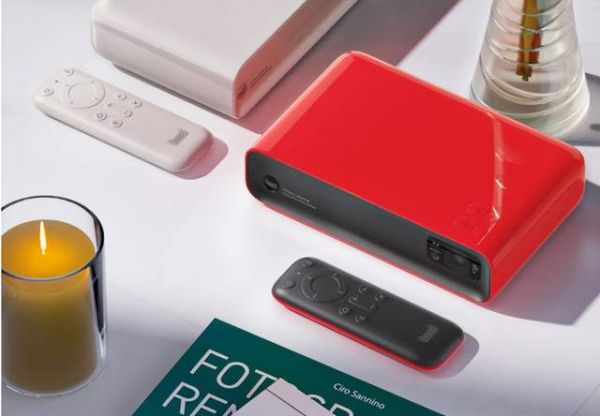 它不像有些投影仪那么笨重,整机仅有书本大小的体积(蓝牙遥控器一体磁吸设计),能轻松摆放在沙发上、茶几上、床头柜上。内置了全自动激光对焦和自动梯形校正功能,随意放在哪都能自动矫正画面,不用繁琐的设置。另外更重要的是,它还内置了电池,不插电也能看3个多小时,轻松看完1-2部电影,大大方便了使用。