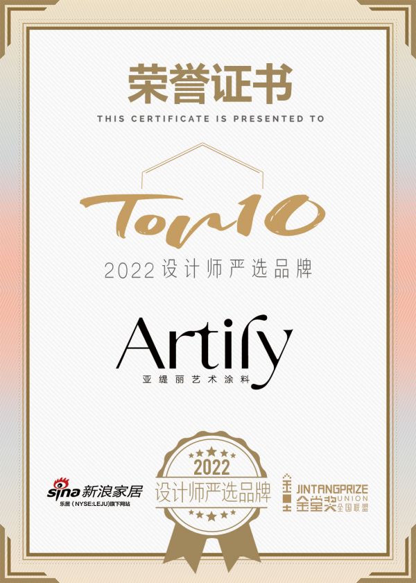 近日,由新浪家居联合金堂奖全国联盟共同发起的「2022 设计师严选品牌 TOP10」活动重磅启动,活动汇集了全国两岸三地数十位设计大咖担纲特邀点评嘉宾,并邀请全国千余名卓越青年设计师担任推荐官,以设计师专业视角,甄选出服务于设计师及业主的高品质制造品牌。Artily亚缇丽荣膺「2022 首批设计师严选品牌TOP10」称号。
