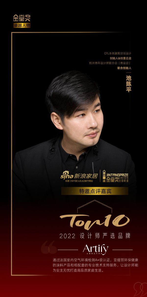 OTL本体建筑空间设计 创始人&创意总监、杭州青年设计师联合会(青设会)联合创始人、金堂奖全国特邀点评嘉宾池陈平对亚缇丽上榜表示祝贺,并点评道:通过法国室内空气环境检测A+级认证,亚缇丽环保健康的涂料产品和相配套的专业技术支持服务,让设计师能为业主无忧打造高品质家庭生活。