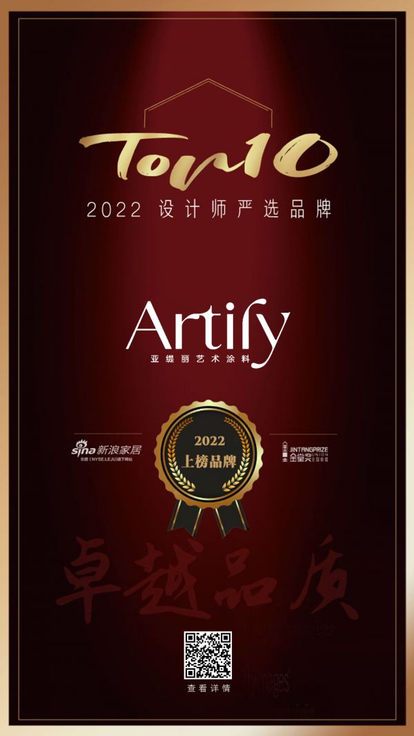 2022年9月28日,「2022 设计师严选品牌TOP 10」再次线上发布。亚缇丽凭借其前沿的研发技术及精湛的生产设备工艺,不断创新和完善,获得设计师评审一致认可,最终荣膺「2022 设计师严选品牌TOP10」称号。