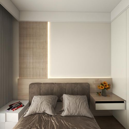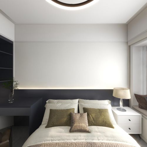 卧室仍注重光线与背板的交相映衬,增加光源与发光口距离,有效吸光达到温和光晕的效果,光线过度均匀,柔和分布,色温可调。让每一次入睡,都有温柔的灯光相伴。