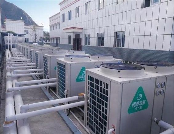 在面对海拔高达4300米的西藏自治区日喀则市亚东县日帕里镇小学集中供暖工程,四季沐空气能也从容应对,不仅克服了高原反应、大雪封路、电压不稳造成的断电、风沙大、零下10度的寒冷等重重困难,还以3台超低温高效空气源热泵机组并联运行的采暖方案,真正实现低温环境下安全稳定制热的功能,为帕里镇小学的孩子们和老师打造舒适温暖的环境。