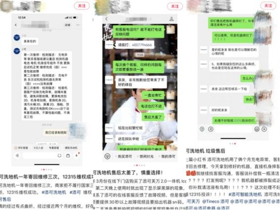 在著名的黑猫投诉上搜索关键词“洗地机”,弹出了超过800条消费者投诉,因产品质量问题被网友们控诉的不乏头部品牌:添可,追觅,必胜等。且在小红书上洗地机的售后也颇受关注,很多像添可这类的大品牌,售后也只能做到只修不退,来返的维修也让消费者觉得“被大品牌割韭菜了“。