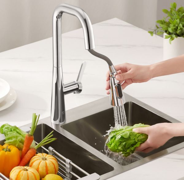 米家抽拉式厨房龙头S1增加了“碗碟劲猛双水刮”功能,即是,开启此模式后,水流呈扁平刮板状劲猛而出,两扇水刮同时出击,帮助快速刮走碗碟油污。不仅减少了洗涤剂的使用,更能提供清洁效率。常规的增压净冲可以用来深层次清晰瓜果蔬菜。另外专利快装结构,仅需10秒就可以完成更换。