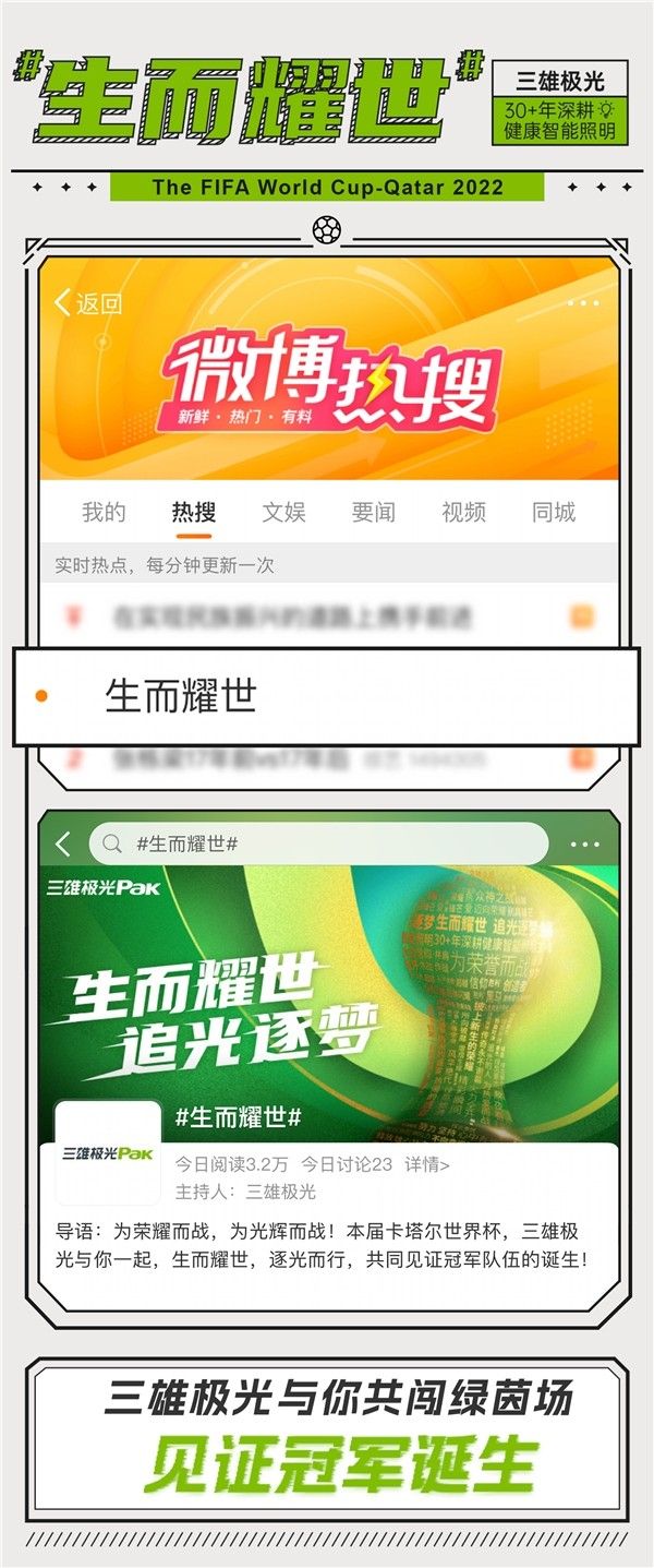 C罗告别世界杯,摩洛哥创造奇迹,面对如此高浓度的热点,赛后广大球迷网民议论不断。三雄极光搅动球迷一起释放情绪,#生而耀世#话题瞬间破6000万,刷爆热搜榜单。