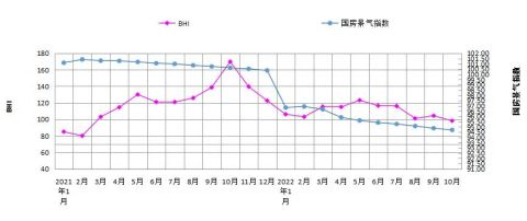 2021年1月—2022年10月BHI与国房景气指数对比图