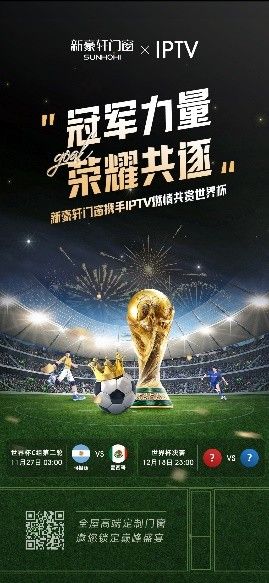 精彩持续上演,热爱永不停歇。新豪轩门窗为热爱助力,携手IPTV登陆CCTV-5世界杯赛事直播,邀您锁定12月18日23:00世界杯决赛盛宴。