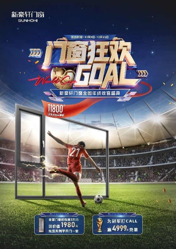 聚焦精彩,喊出热爱!快来新豪轩门窗参与“门窗狂欢GOAL”年终收官盛典、世界杯冠军竞猜,赢取相应豪礼吧!