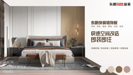 在“十四五”城镇化改造盛行趋势下,基于老旧社区翻新改造交付工期长、环保要求高、个性化需求大、性价比高等市场需求,东鹏绿家创新研发集基材环保、安装便捷、满足多样化装修需求的快装墙饰板,为消费者提供绿色环保的墙地一体化快装解决方案,实现24小时环保焕新,整体空间快速交付入住,成为新时代家装首选。