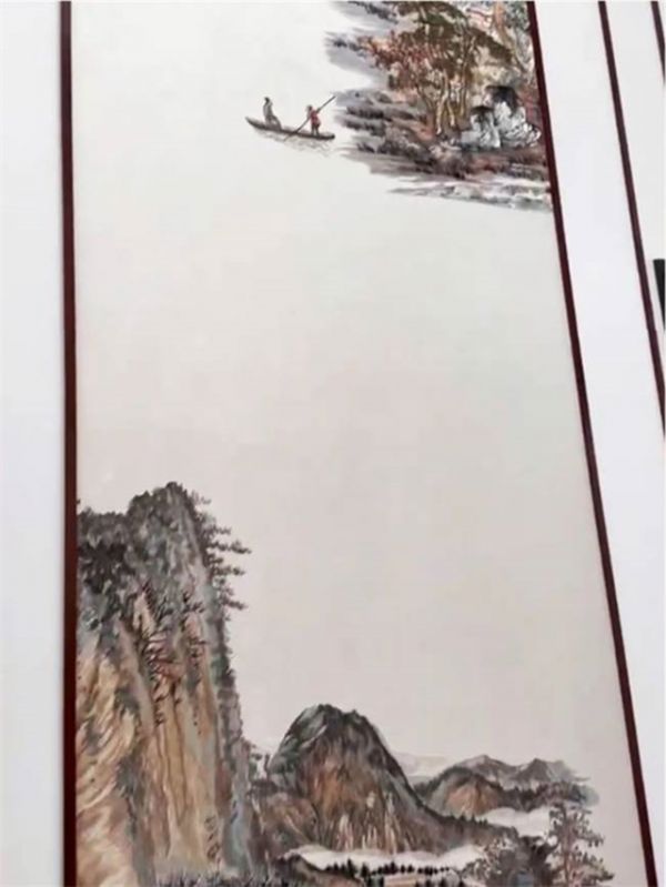《志存高远》寓意人生不可无志,立志则当高远。志存高远,放飞梦想是极可贵的精神力量。在风水学上,山脉称为龙脉,山水图是我国传统的吉祥图,背靠大山、水(财)长流、平安之意。山是靠山,不管是生意或是为官,都会遇到靠山。有山有水,寓意“旺丁旺财”,因为“山管人丁,水管财禄”。有舟船,寓意一帆风顺,所以依山傍水,寓意“靠山”厚实。 这是一幅全墙布行业的卓越刺绣山水背景墙画,其密度、配色、绣作针脚都堪称经典,也是领绣墙画中销量NO.1的一个刺绣作品。