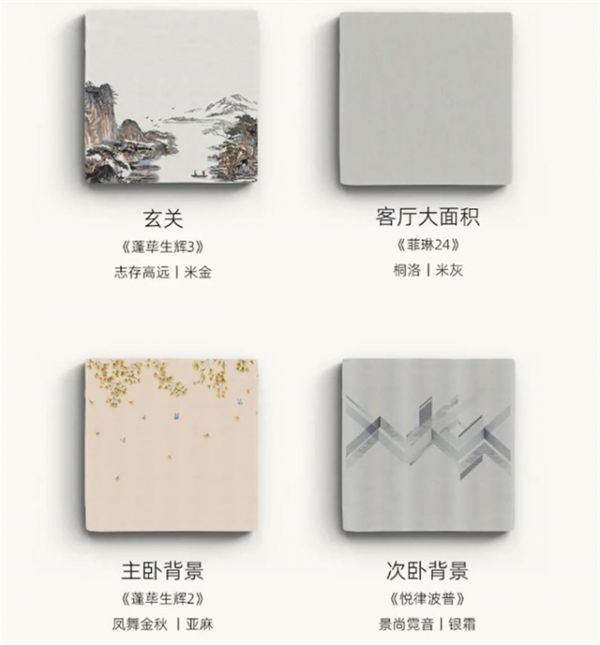 此套实景案例由苏州高新区横塘红星美凯龙领绣墙布提供,整屋用了四款产品:《蓬荜生辉3》、《菲琳24》 、《蓬荜生辉2》和《悦律波普》,上墙效果绝佳,每一幅都能完美适配于每个空间,一起来感受独具匠心的东方雅韵!