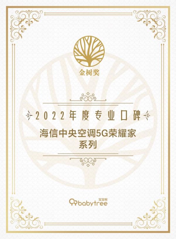 其实,要解决这个问题,不妨看看广大宝爸宝妈们究竟对哪款中央空调最认可。12月14日,由国内知名母婴社区平台宝宝树举办的金树盛典正式举办。在活动中,宝宝树在与母婴群体相关的多个行业与品牌中,评选出多个年度奖项。其中,海信中央空调5G荣耀家系列被授予“2022年度专业口碑奖”。