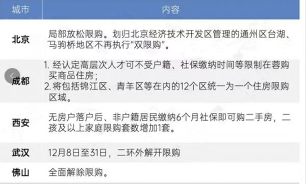 今年以来,各地陆续出台多项利好政策,以保房企平稳着陆。以下为2022年11月至今部分城市优化调整限购政策情况。