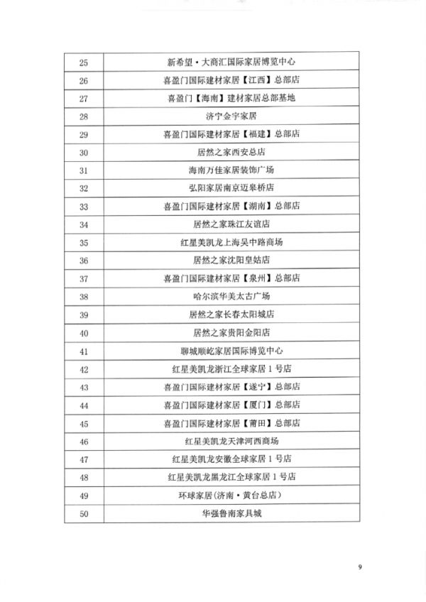 单店50强中,来自全国连锁和区域连锁的卖场总计有35家,占总量的70%,分别是:居然之家10家,喜盈门9家,华美立家6家,红星美凯龙5家,大明宫3家,弘阳2家。全国连锁和区域连锁的卖场总入围家数比2021年提升了6%,并且自调查以来呈现逐年上升态势。