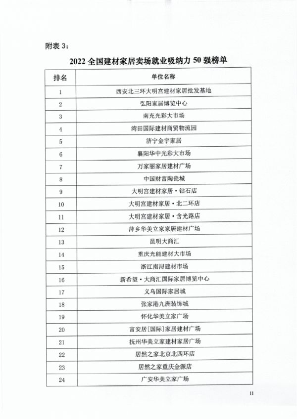 根据企业上报的统计数据,以2021年全年销售额为主要参考指标,进行了“2022年全国建材家居卖场单店50强”排序、“2022年全国建材家居批发市场10强”排序;另外,为了反映建材家居卖场对经济社会发展的贡献,根据企业上报的统计数据,以卖场带动从业人员总数为主要参考指标,进行了“2022年全国建材家居卖场就业吸纳力50强”排序,现发布如下: