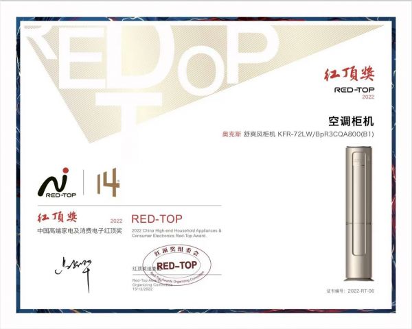 12月15日,由中国家用电器协会指导、红顶奖组委会主办的“第14届中国高端家电趋势发布暨红顶奖颁奖盛典”在北京举行。奥克斯空调凭借旗下产品舒爽风柜机的优质产品力和在公益领域的积极担当,从众多家电品牌中脱颖而出,揽获中国高端家电及消费电子“红顶奖”和“2022年红顶公益奖”两项大奖,展现了在产品创新突破和履行社会责任方面备受行业认可的非凡成就。