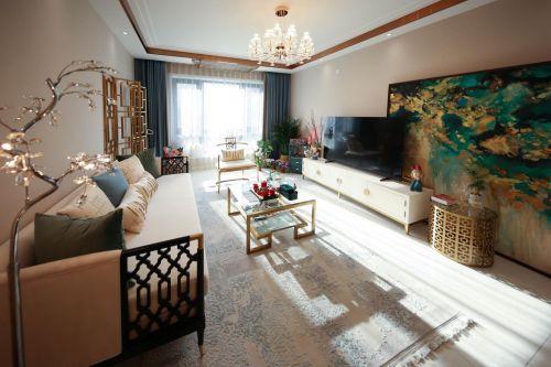 该作品为知性、职业的女性业主进行设计,融合中式、新古典元素设计时尚新中式居住空间,各空间有各独自的功能 和特点,装饰上既有艺术的氛围又有舒适的体验,整体装饰为时尚新中式风格,既有合理的功能布局,又有完善的工作设施,协调又雅致。