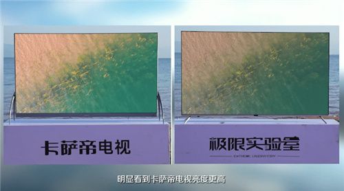 相同光线条件下,普通电视与卡萨帝电视表现如何?普通电视在强光下画面很暗,暗光下暗淡模糊;卡萨帝电视在强光下亮度更高,暗光下鲜艳清晰。