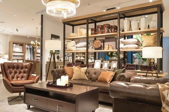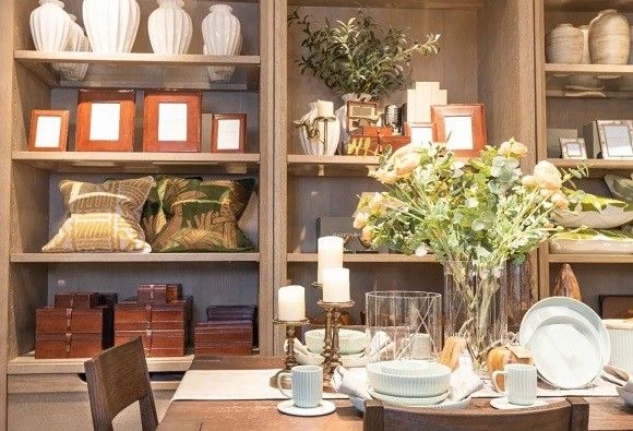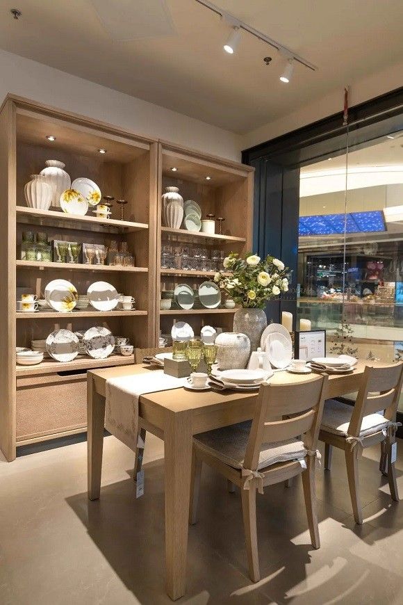 门店陈列贯彻品牌的美学观点,店内产品搭配齐全,展示多个系列的生活家品,包括家具、灯具、摆件、纺织品。