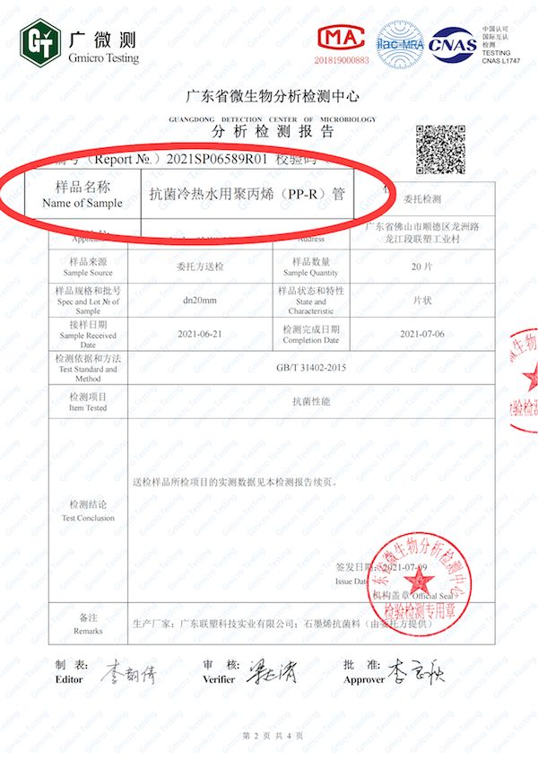 纳米抗菌管是在PP-R管基础上的升级,它不仅具有PP-R管材的所有特性,而且具有显著的抗菌效果。管材采用高科技抗菌材料纳米银离子,能够直接深入细菌的细胞核,让细菌窒息而死,具有高效广谱抗菌功效,无毒无污染,纳米抗菌技术能够广泛抗菌而且效果持久。经国家权威机构检测表明,管材对大肠杆菌、金黄色葡萄球菌及鼠伤寒沙门氏菌抗菌率达90%以上,各种卫生指标均达到国家标准,纳米抗菌 PP-R管是一种功能性给水管,可直接用于纯净水输送系统,是生活用水的卫生防线。