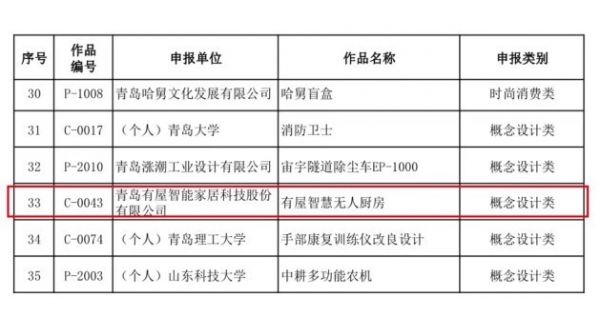 近日,以“设计让生活更美好”为主题的“青岛设计印象2022”大赛评审公示,有屋智慧无人厨房产品从众多参赛产品中脱颖而出,荣获“青岛设计印象2022”大赛铜奖。