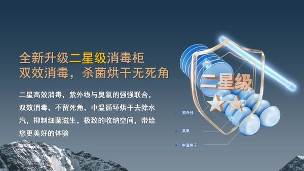 科技成就健康生活,美大多系列全新升级二星消毒柜款集成灶,紫外线与臭氧强强联合,双效合一,360°不留死角,全面杀菌;同时搭载中温循环烘干功能,去除餐具残留水汽,有效抑制细菌滋生,大容量消毒柜收纳消毒双重使用,专业呵护餐具健康。