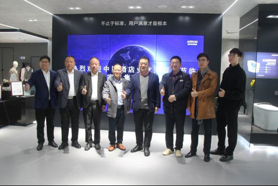 12月17日,箭牌家居集团总部迎来了一批尊贵的客人。中国建材流通协会执委副会长兼陶瓷卫浴经销商委员会主席李作奇,中国酒店业优采联盟秘书长陶舰,深圳纳瑞德文旅健康产业集团/物业酒店管理公司董事长林健,深圳华侨城酒店发展有限公司规划设计中心副总监魏巍,迈点网总裁罗钦,佛山市卫生局洁行业协会秘书长刘文贵等以及随从人员一行专程来到箭牌大厦总部展厅参观考察,受到了箭牌家居集团董事副总经理谢炜、副总经理卢金辉、安华卫浴大客户事业部经理孟义、法恩莎卫浴大客户事业部经理郑纯等集团高管的热情接待,并陪同考察。