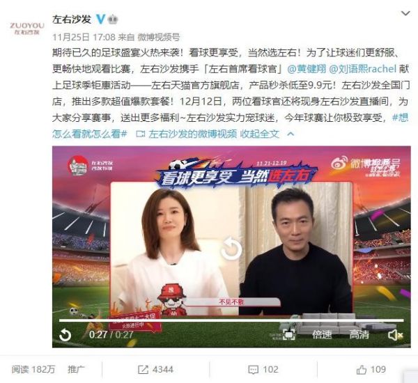 浦玮、黄健翔、刘语熙助阵,左右沙发足球营销玩出新高度