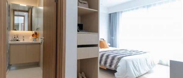 而与这近乎完美的产品形态相匹配的,还有将高配进行到底的精装修和尺度惊人的户型结构。如墙布、电视背景墙、德国原装进口的高仪龙头和花洒、摩恩智能马桶、末端净水器、老板的油烟机、燃气灶、洗碗机三件套,以及东芝中央空调等等。