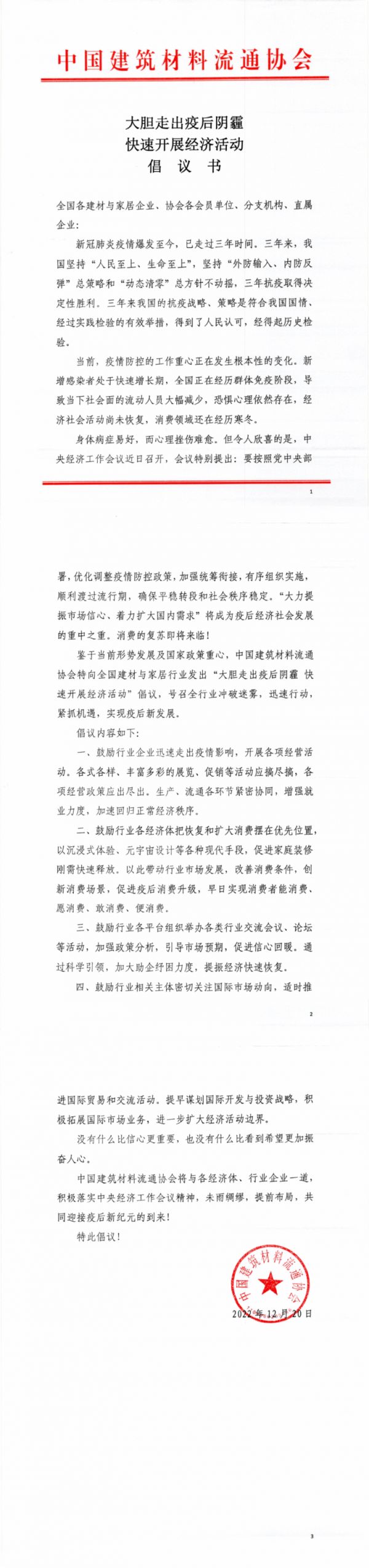大胆走出疫后阴霾 快速开展经济活动 倡议书