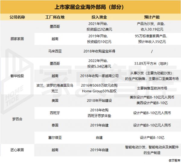 2022前三季度,成品家具企业的海外业务均是增收主力。各大定制家居企业海外业务布局也已成规模。